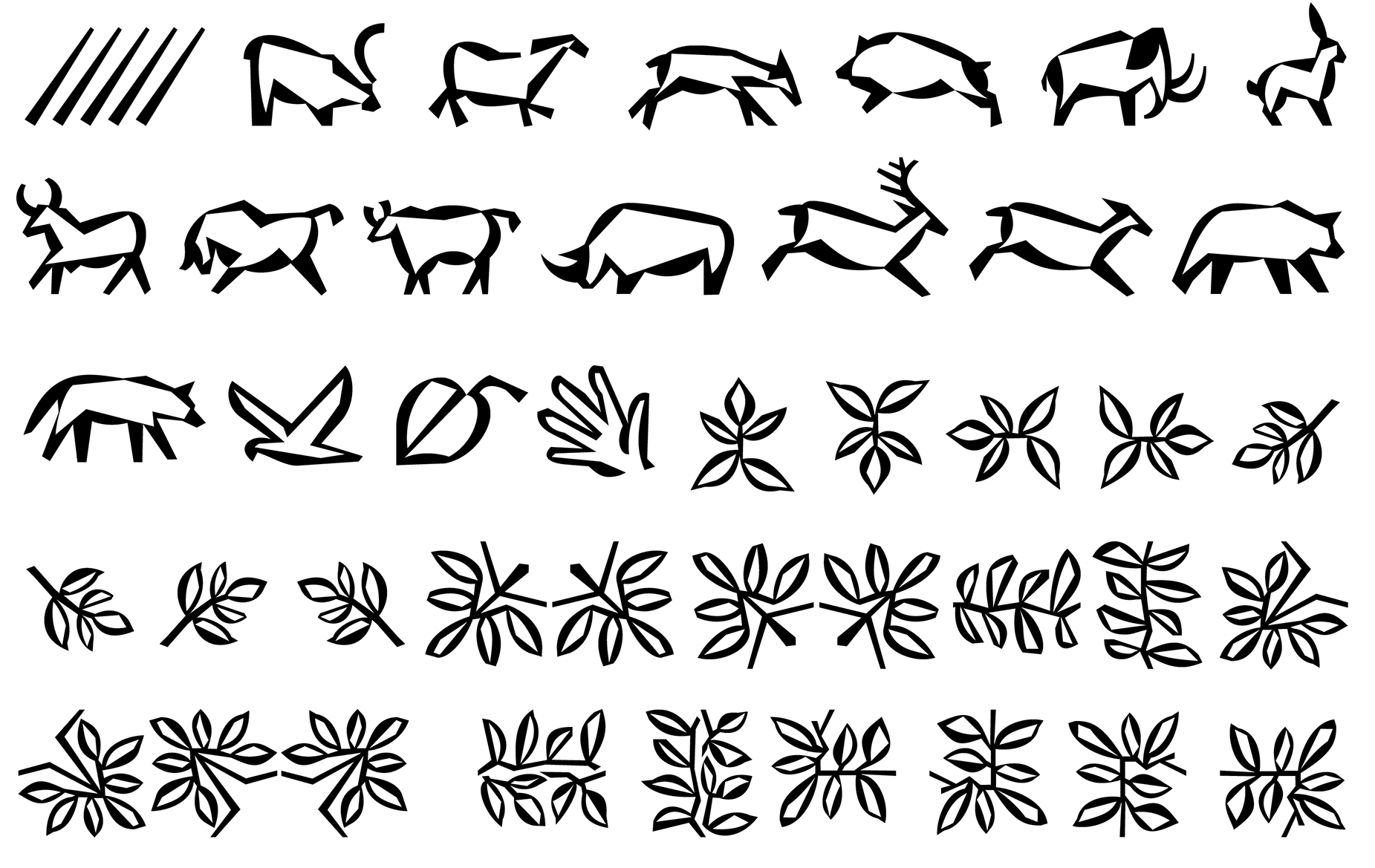 [Auroc's symbols — 2020] Design of the symbols of “Auroc”, a type family created by Lewis McGuffie. Auroc is a petite-serif typeface with an organic touch. Strokes terminate with knife-like cuts and the joints between curves and stems are incised with sharp notches. Auroc works for labelling and logos but also as a text type at smaller sizes.